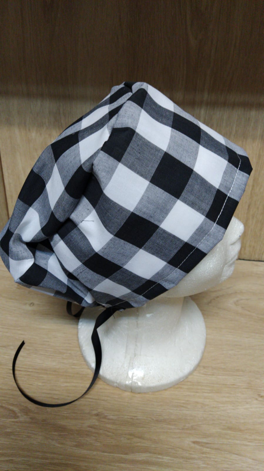 Gorro sanitario de cuadrados negros y blancos